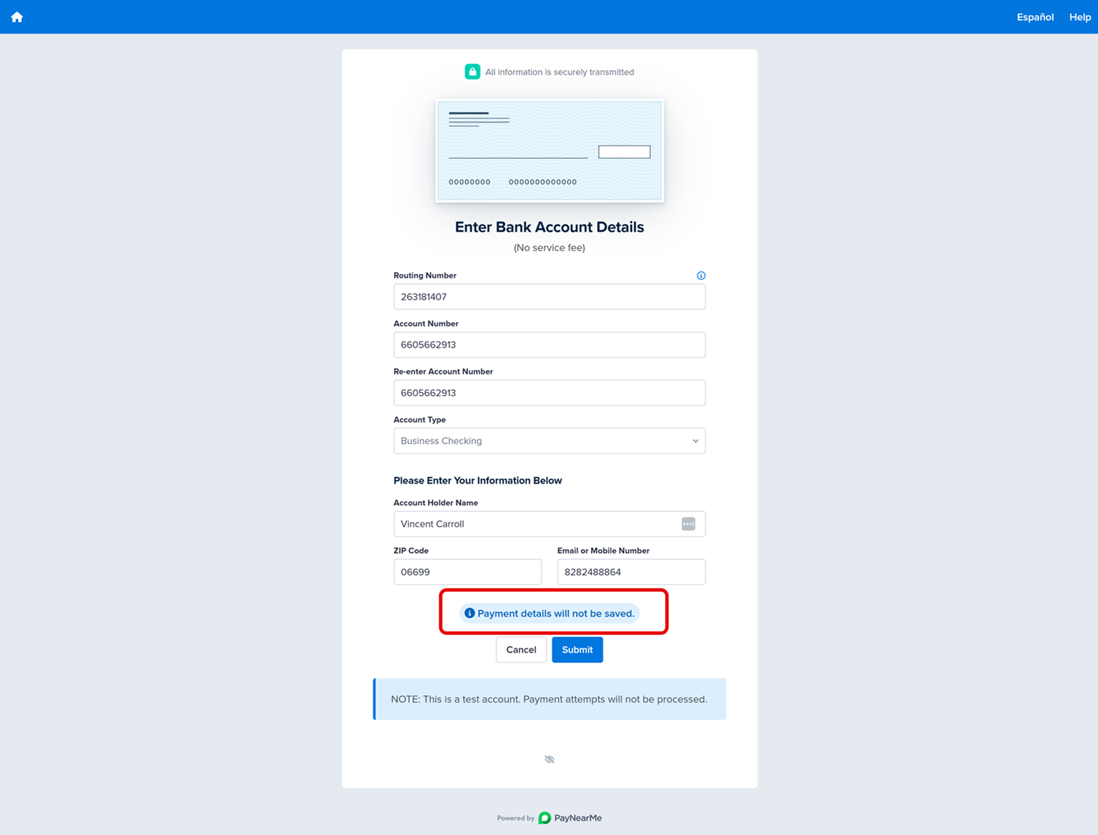 - The feature must be enabled for your site by PayNearMe. Your PayNearMe Technical Account Manager or Implementation Team applies site-level settings using the configuration options described below.