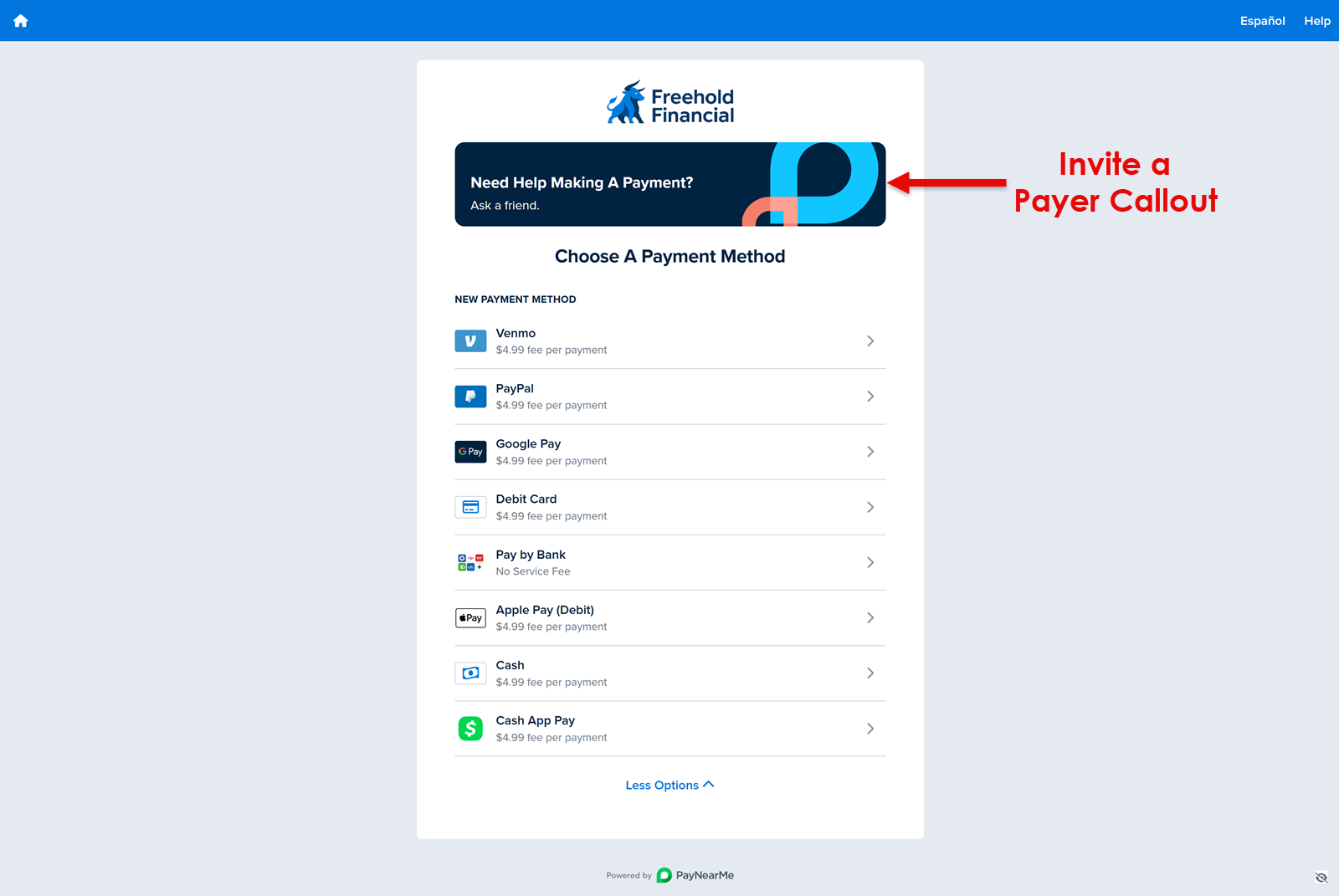 PayNearMe’s Invite a Payer feature gives consumers the ability to ask friends or family to help with a payment. When enabled, consumers can