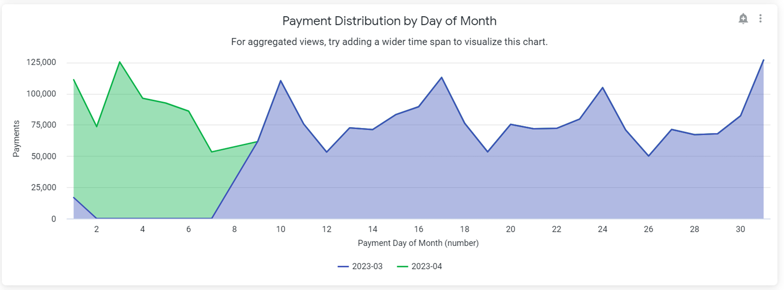 The payment distribution charts let you drill down into your payment data to see precisely when consumers make payments.