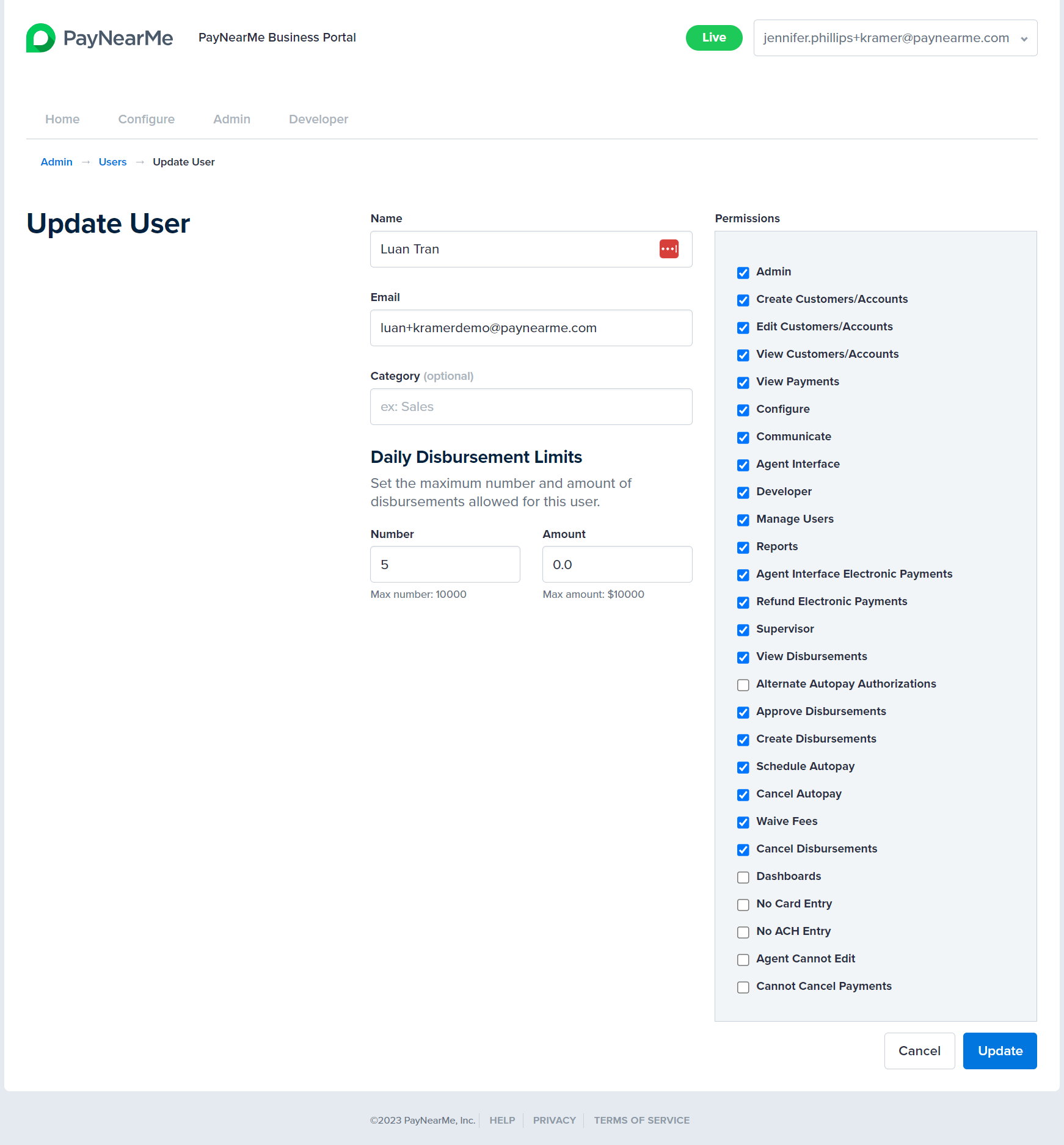 Select the Edit option from the menu that pops up. The Update User screen displays.
