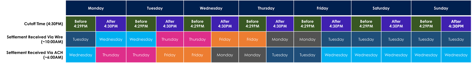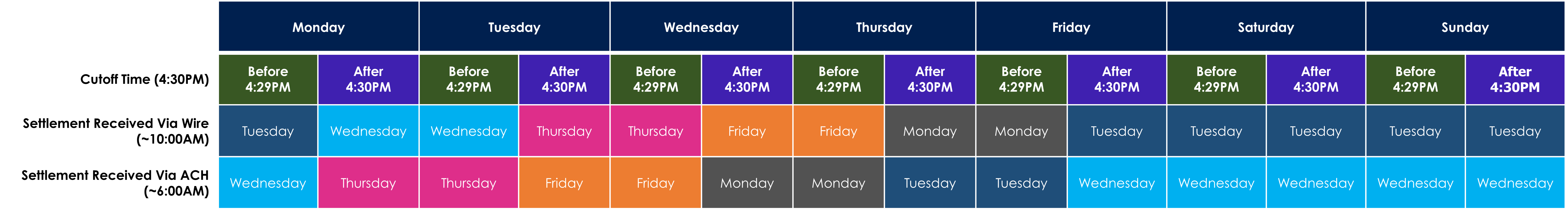 Settlement TimesThe charts below are in Pacific Standard Time (PST).