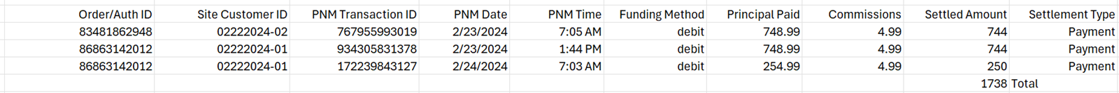 | 4 | PNM Time (PST) | Payment time in Pacific Standard Time |