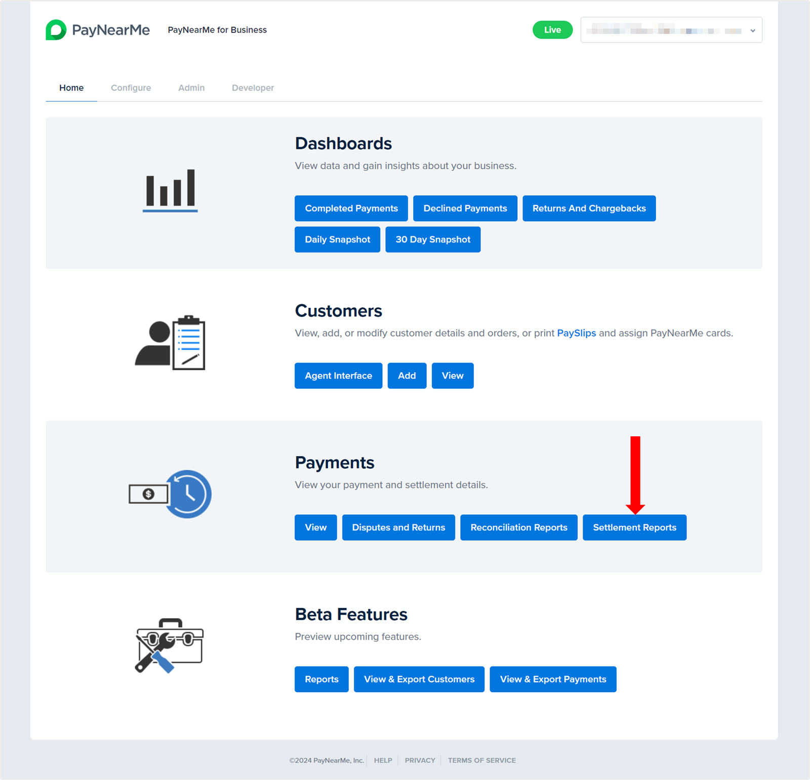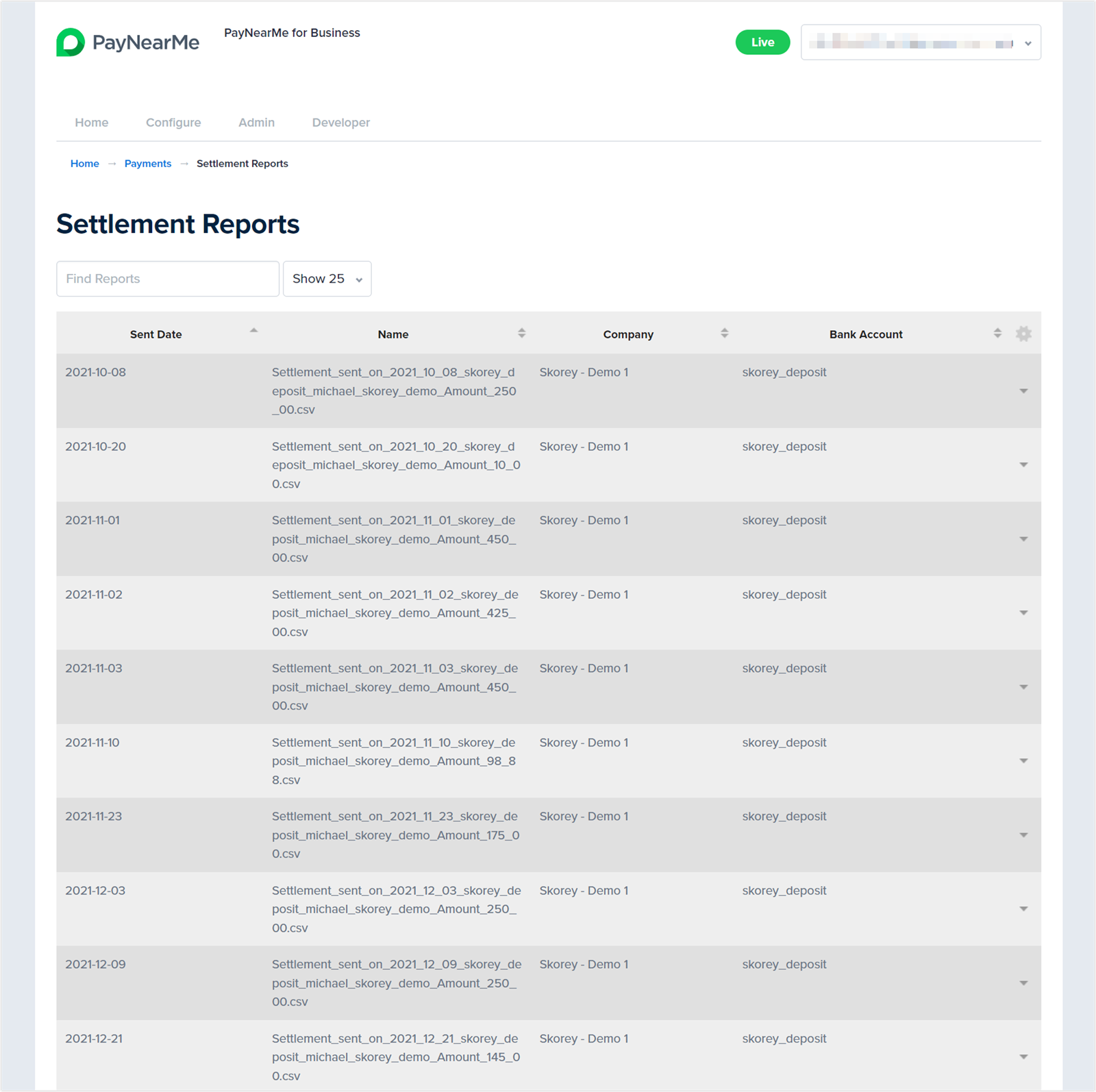PayNearMe generates settlement reports each business (or banking) day. Use settlement reports to definitively track deposits in your bank account.